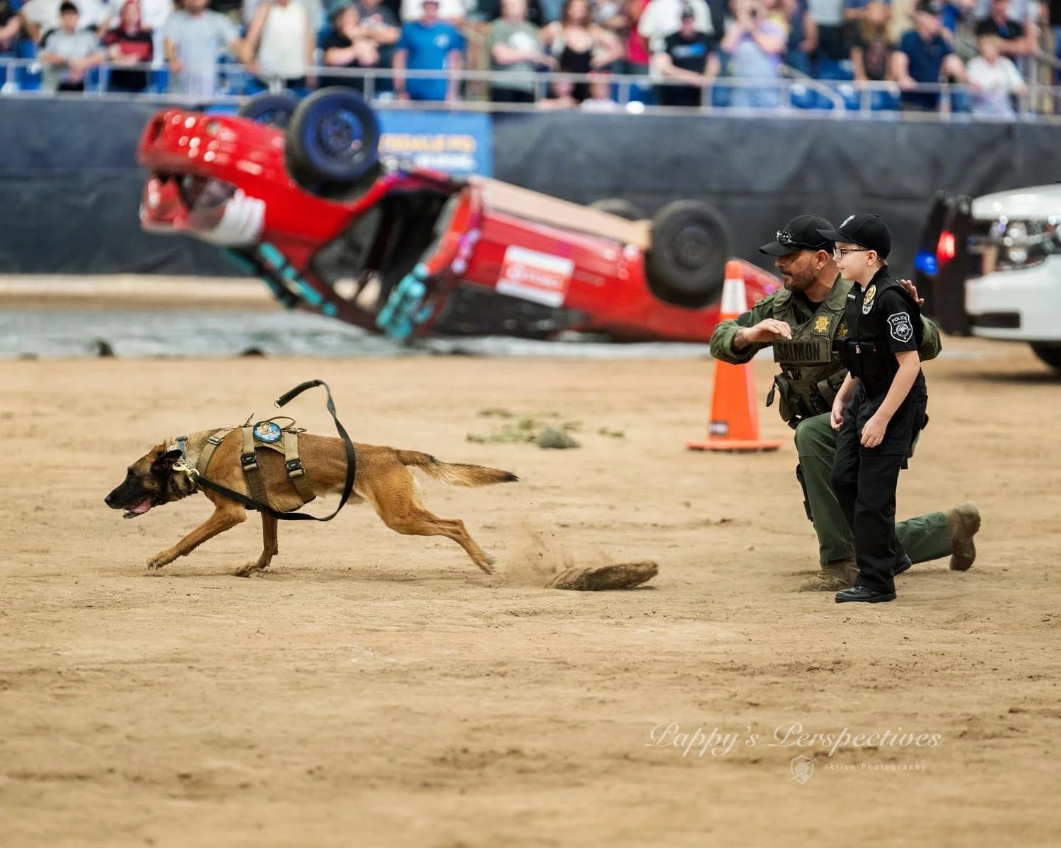 K9 JAKE DOING A DEMO AT AN INDOOR FOOTBALL GAME