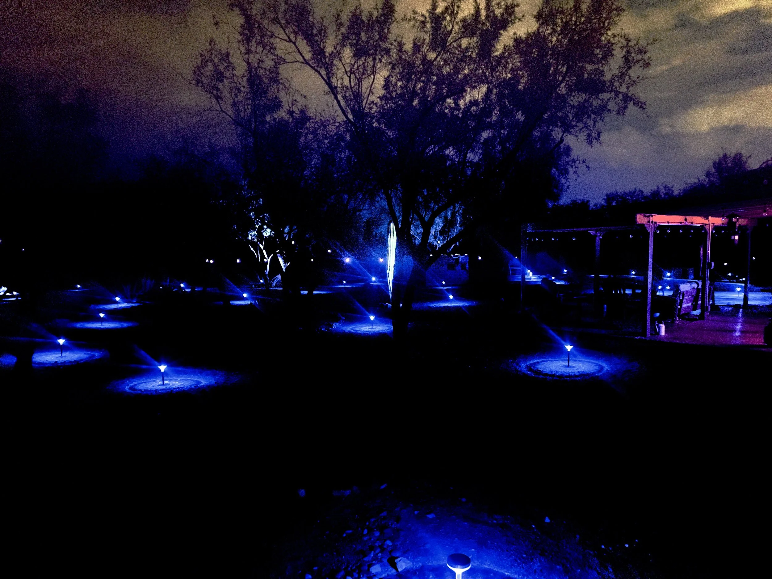 BACKYARD LIGHTS ALL IN BLUE IN MEMORY OF HANDLER WHO PASSED AWAY AND K9 KENZO