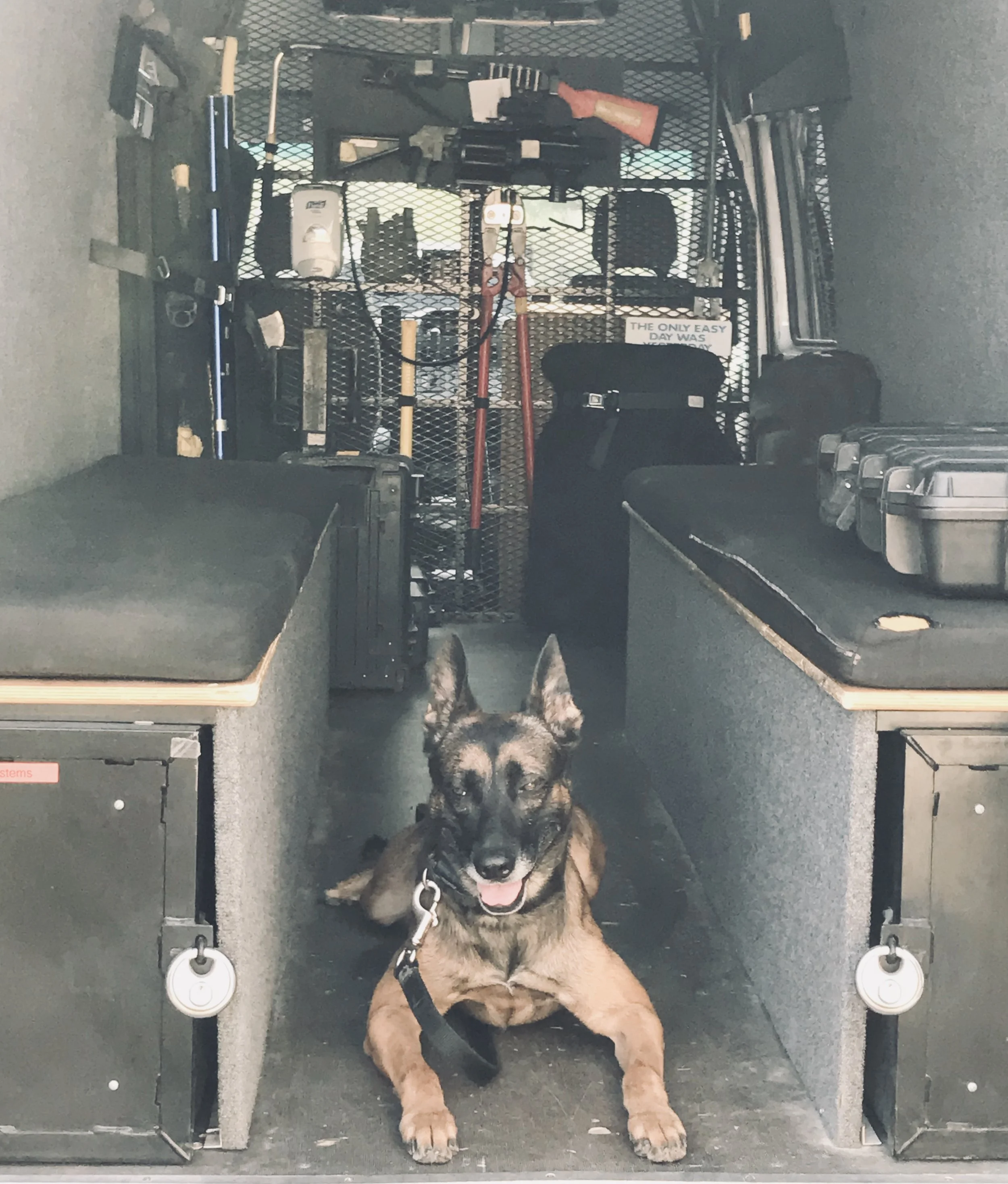 K9 JAKE IN SWAT VAN AFTER A LONG HARD SEARCH
